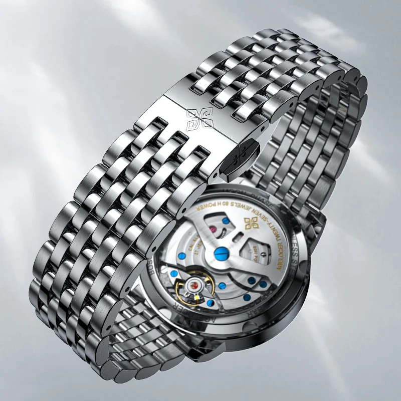 Gökyüzünün ihtişamını ve zamanın sonsuzluğunu bileğinize taşıyan paslanmaz çelik başyapıt: Agelocer Astronomer Automatic Mechanical Silver Steel. Geleneksel saatçilikteki ay fazı (moon phase) tasarımlarını yıkarak kadranın büyük bölümünü kaplayan panoramik ve üç boyutlu bir Ay döngüsü sunar. İdeal 40mm kasa çapı, çizilmeye dayanıklı safir kristal camı, lüks çelik bileziği ve tam 80 saat güç rezervi sunan üst düzey otomatik mekanizmasıyla sınırları zorlayan bu lüks zaman ölçer; orijinal özel tasarım lüks kutusu, garanti belgesi ve faturasıyla tam set olarak gönderilir.