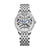 Swarovski Detayları: Zaman indeksleri (saat işaretleyicileri) olarak kadrana ustalıkla yerleştirilmiş 10 adet Swarovski kristali ve mekanizmanın merkezinde parlayan sentetik yakut (ruby) taşlar, iskelet mimariyi lüks ve ışıltılı bir zirveye taşır.