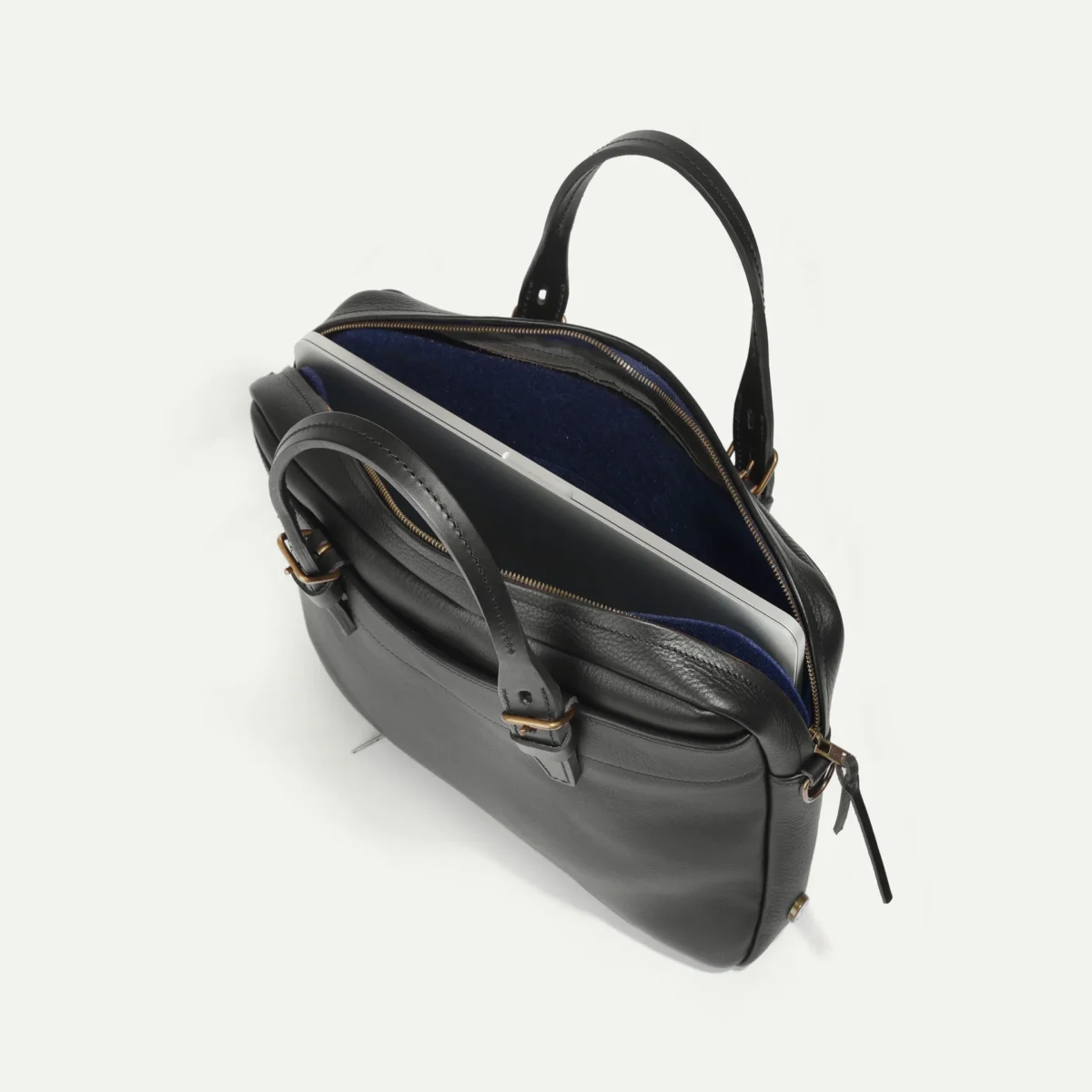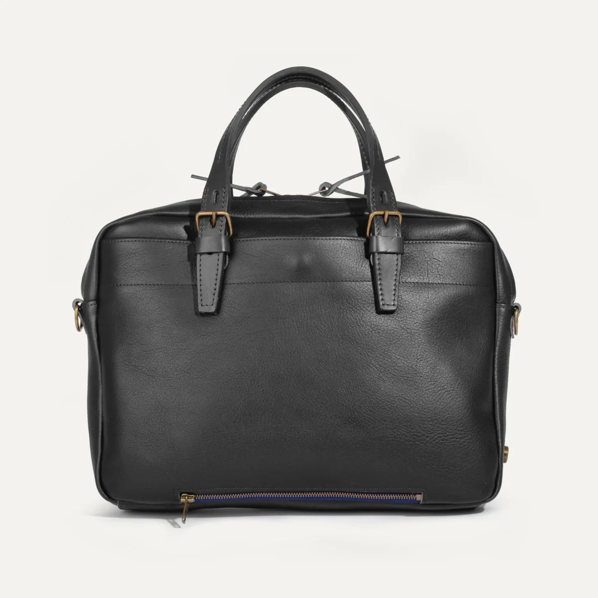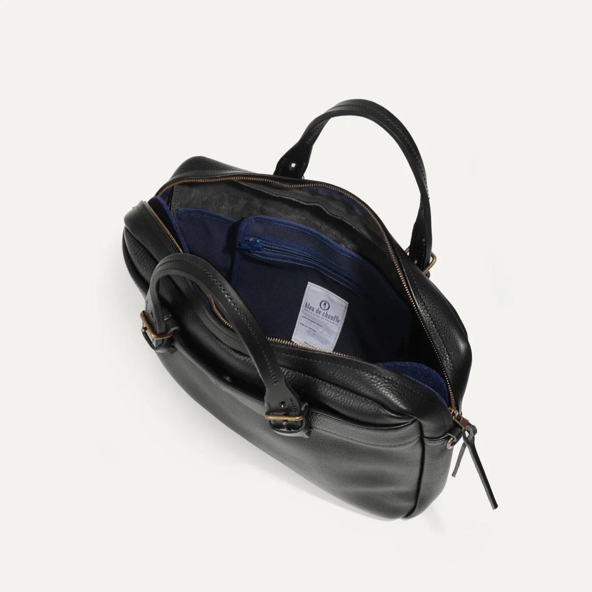 Fransız işçi sınıfı mirasından ve 20. yüzyılın tesisatçı çantalarından ilham alan Bleu de Chauffe, modern iş hayatı için yeniden yorumlanan “Folder” modeliyle karşınızda. Siyahın en doğal ve asil halini yansıtan bu çanta, kimyasal krom kullanılmadan, sadece doğal maddelerle (mimoz, kestane vb.) işlenen bitkisel tabaklanmış deriden yapılmıştır.