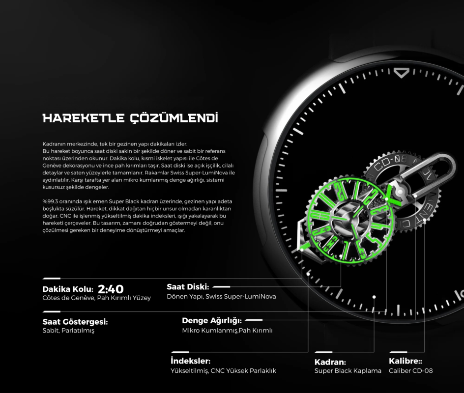 Gezinen saat dilini tek, minimalist ve ince bir harekete indirger. Sonuç: Daha doğrudan, daha anlaşılır ve günlük kullanıma uygun bir deneyim.