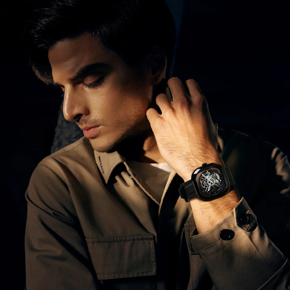 Eastern Jade’in ruhu, kasanın etrafını saran özel üretim Yeşim Seramiği halkasında gizlidir. Bu seramik yapı, sadece görsel bir benzerlik değil; dokunulduğunda hissedilen pürüzsüzlük ve termal dengesiyle doğal bir mücevher hissi uyandırır. 316L paslanmaz çelik iç iskeletle bütünleşen bu seramik gövde, ışığı emen ve yansıtan derin dokusuyla iskelet kadranın mekanik sertliğini yumuşatarak sofistike bir denge yaratır.