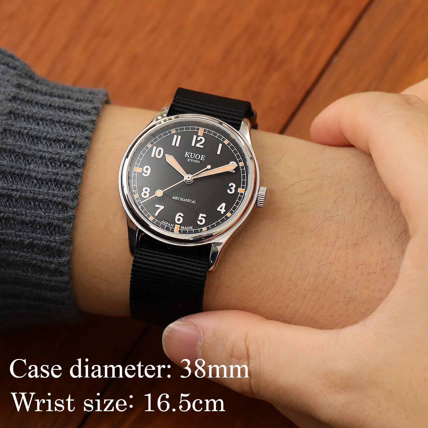 KUOE Old Smith 90-002 Large 38mm automatic no-date watch black dial
