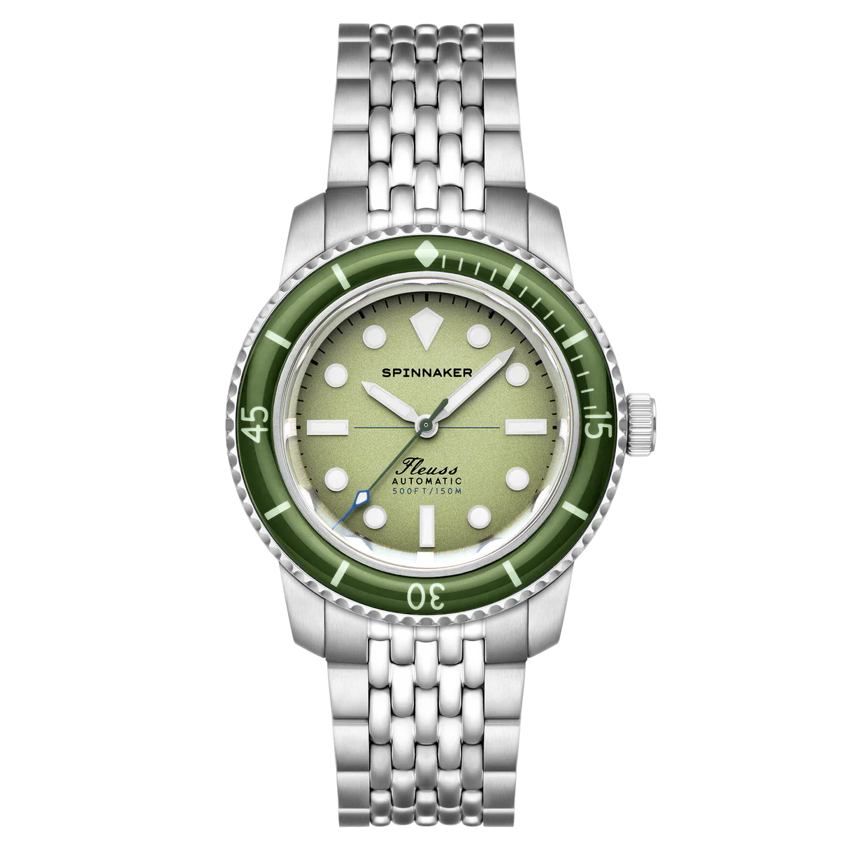 Pine Crest Kadran: Işığın açısına göre canlanan bu eşsiz koyu yeşil ton, güçlü fosforlu indeksler ve altın/çelik tonlu ibrelerle tamamlanarak gece veya su altında mükemmel okunabilirlik sağlar.