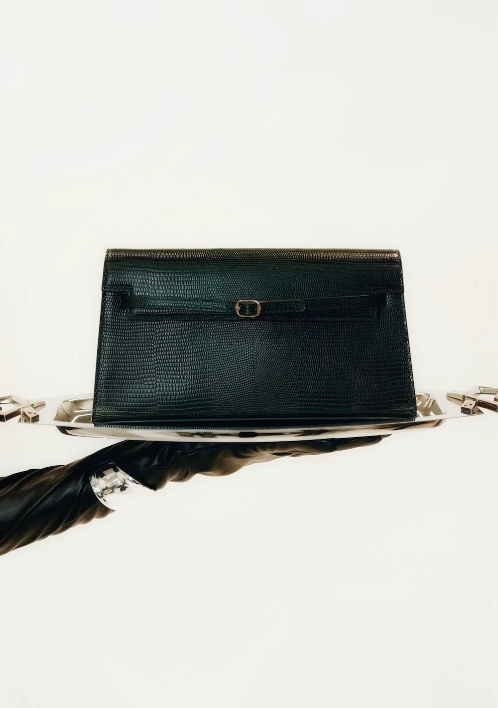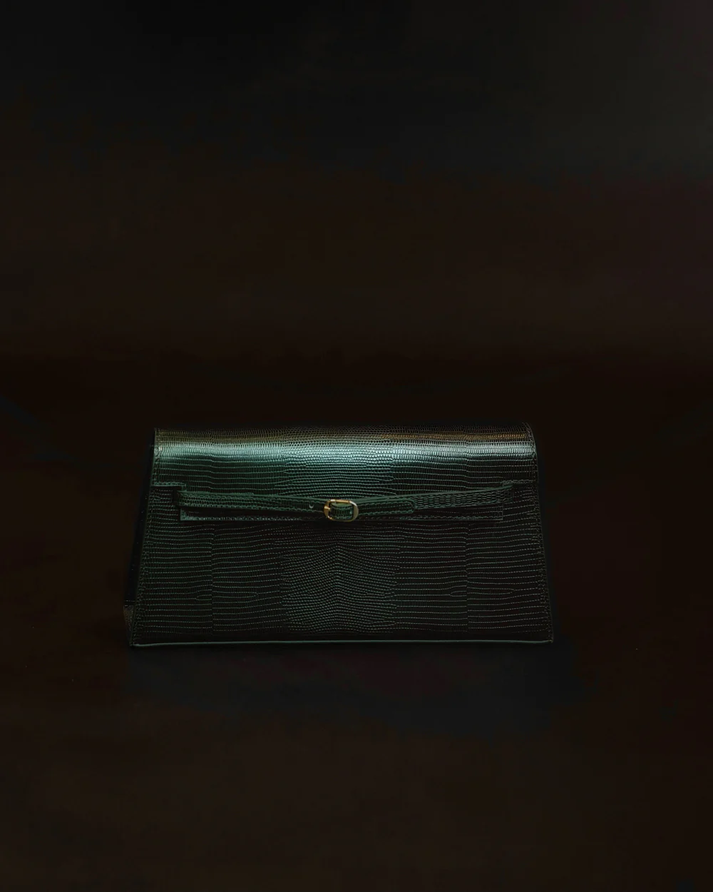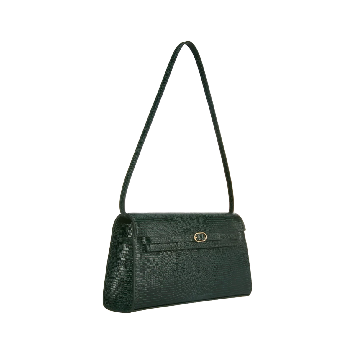 VERAFIED Emerald Lizard Omuz Çantası – Kertenkele Dokulu Deri Baguette