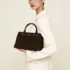 Süet yüzeyin yumuşak dokusu ile deri tabanın sağlam yapısı birleşerek çantaya hem görsel derinlik hem de dayanıklılık kazandırır. Bu model, özellikle “work bag” kategorisinde minimal ama güçlü bir alternatif sunar.